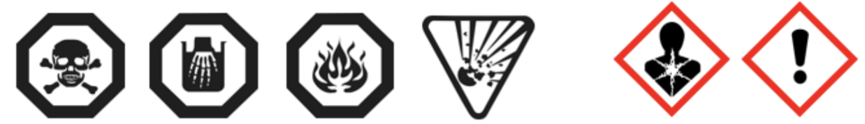 - L'ajout des pictogrammes de dangers chroniques du SGH aux pictogrammes déjà existants du RPCCC, afin d'avoir un système hybride de pictogrammes